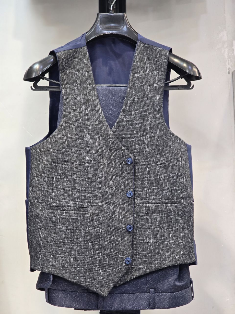 کت شلوار اسپرت سرمه ای با جلیقه ی دورو